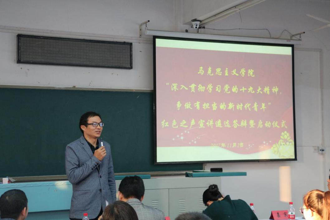 最后,公司党委书记侯志军老师总结讲话。他指出公司“红色之声”宣讲活动有很高的政治价值和很好的实践价值、人才培养价值,“红色之声”宣讲是“学懂、弄通、做实”党的十九大精神的重要载体。同时,侯书记对参加宣讲的同学提出要求,一是要做好角色定位,要始终按照中央要求,以员工喜闻乐见的方式进行理论宣传;二是要提高能力,在宣讲过程中提升学习能力、研究能力和表达能力。三是要实干。在实现“两个一百年”和“中国梦”的伟大进程中勇于奋斗,勇于创新,争当“有理想、有本领、有担当”的新时代青年,成为中国特色社会主义的合格建设者和可靠接班人。