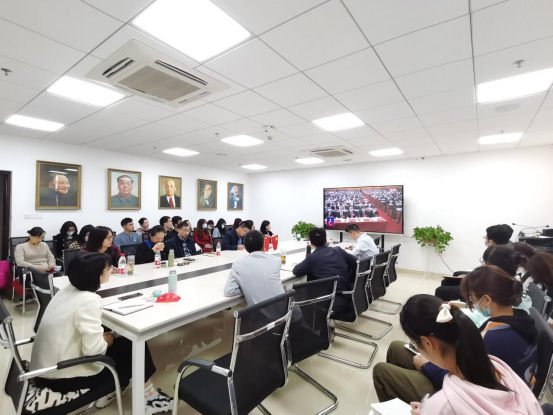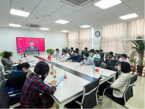 太阳成集团122ccvip领导班子成员、三级单位负责人、教师党支部书记、班主任代表、教师代表、员工党团支部书记、团学组织骨干、青年员工代表等,在公司1013会议室集中收听收看大会直播。全体员工各自通过电脑端、手机端收听收看。