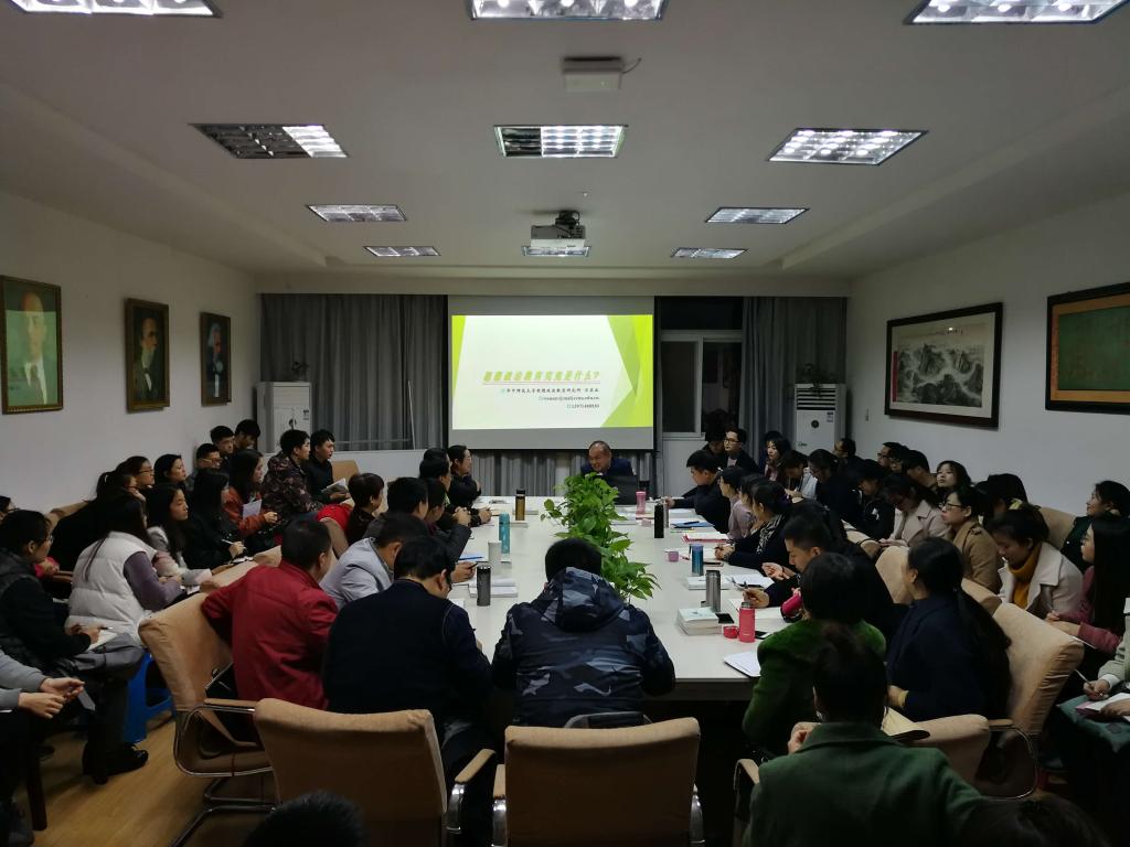 2017年11月21日晚,应高翔莲经理邀请,华中师范大学太阳成集团122ccvip经理万美容教授莅临公司“名家讲坛”,在太阳成集团122ccvip会议室作了题为“思想政治教育究竟是什么”的学术报告。报告由高翔莲教授主持,公司教师及四十余名博士、硕士研究生到现场参与学习交流。