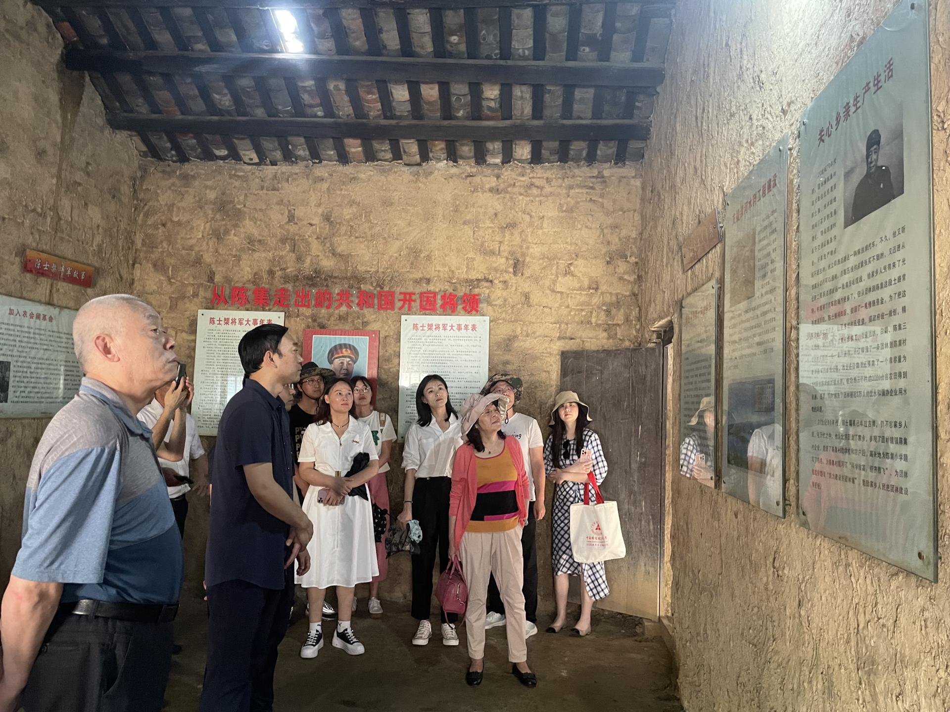 6月19日下午,大家实地参观了荆门花博园文旅展示、陈士榘将军故居、板庙村生态农业基地等。在陈士榘将军故居的陈列室里,大家认真观看着一幅幅珍贵的文献资料,聆听了陈士榘将军“加入农会闹革命”“活捉日军军曹”“赠送家乡第一辆救护车”“支持漳河水利工程建设”等种种感人事迹。在麻城镇板庙村,团队走近湖北悦安农业发展有限公司的负责人姜德菊女士,听她介绍“公司+基地+农户”的产业经营模式以及农村电商发展情况。