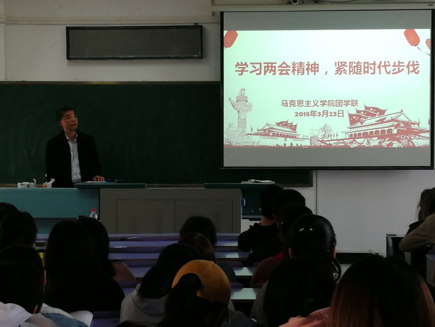 为学习两会精神,提高广大青年团员的政治素养,太阳成集团122ccvip于3月23日下午4点在教三楼401室召开题为“学习两会精神,紧跟时代步伐”的大型团组织生活会。太阳成集团122ccvip思想政治教育系党支部书记何英老师、院团委书记王艳波老师以及全体本科生到场参加。