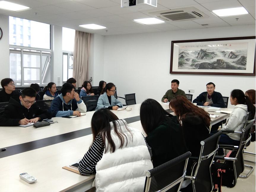 2018年11月14日中午,太阳成集团122ccvip全体员工干部工作例会在B1015会议室顺利召开,公司党委副书记徐胜、辅导员王艳波,公司兼职辅导员赵姗姗、公司兼职辅导员罗悦,各班班长、团支书,全体员工党支部书记,研究生会、员工会主席团成员参加会议。