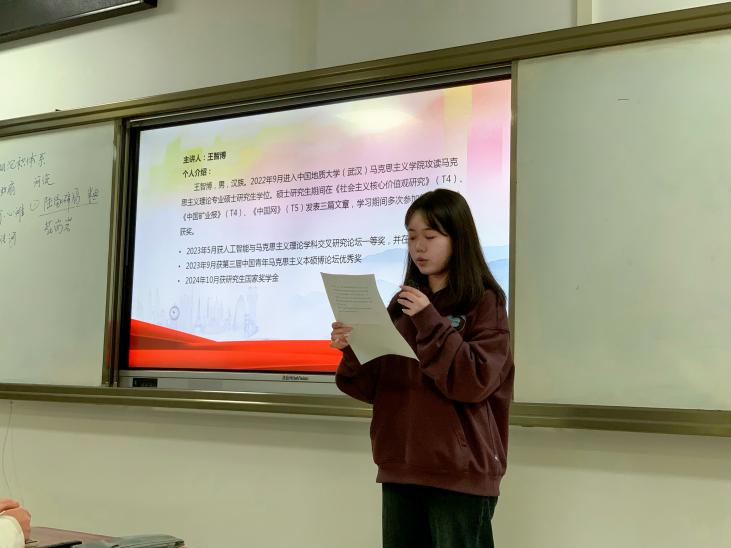 首先,王智博从借鉴方向、观察依据、确定大纲这三个关键环节入手,向与会同学们分享了自己在文献阅读、论文选题与撰写等方面的经验。他特别强调,培养敏锐的问题意识与深入研读经典原著是至关重要的,并激励同学们广泛涉猎相关文献资料,紧跟学科前沿的热点议题,同时夯实基础理论的学习根基。其次,王智博以其发表过的一篇论文为例,通过对论文结构框架的深入分析,进一步深化了同学们对论文写作的认识和理解,也启发了他们在写作中的创新思维。最后,针对论文投稿这一环节,王智博结合期刊的难易程度和导师的偏好,为同学们提供了实用的投稿策略与建议。