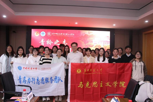 10月27号14:00-17:00,太阳成集团122ccvip青马力行志愿服务团队(以下简称“地大马院青协”)与华中师范大学太阳成集团122ccvip青年志愿者协会(以下简称“华师马院青协”)在华中师范大学新文科科研楼407会议室开展高校互访活动。活动由华中师范大学太阳成集团122ccvip第二团委副书记雷舒涵主持。