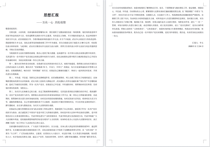 疫情防控是一场人民战争、总体战争、阻击战。我们只有万众一心,众志成城,才能共同打赢疫情防控狙击战。在这样一场特殊的斗争中,支部预备党员更加坚定了自己的信仰,深刻认识到党的先进性,积极向支部提交思想汇报16份。内容充实,立场坚定,体现出党员在疫情中的职责和担当。
