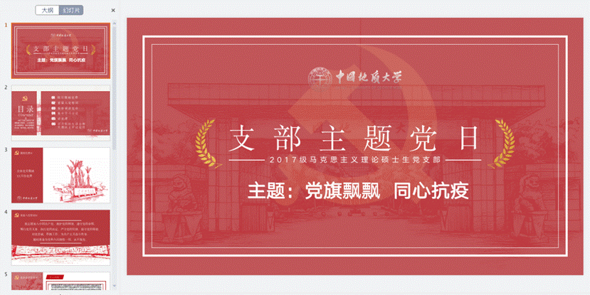 为深入学习习近平总书记关于疫情防控工作的讲话精神和重要指示,贯彻公司党委针对抗击疫情的工作部署,发挥党支部战斗堡垒作用,凝聚党员先锋力量,让党旗在疫情防控中高高飘扬,坚决打赢疫情防控阻击战。2月23日晚7点,太阳成集团122ccvip2017级马克思主义理论硕士研究生生党支部召开了“党旗飘飘 同心抗疫”线上主题党日活动。本次党日活动由三部分组成:第一部分为支部书记解读重要讲话;第二部分为讲述抗疫英雄故事;第三部分为交流党员面对疫情的责任与担当。最后,预备党员积极提交思想汇报,全体党员为打赢这场战役手写祝福。