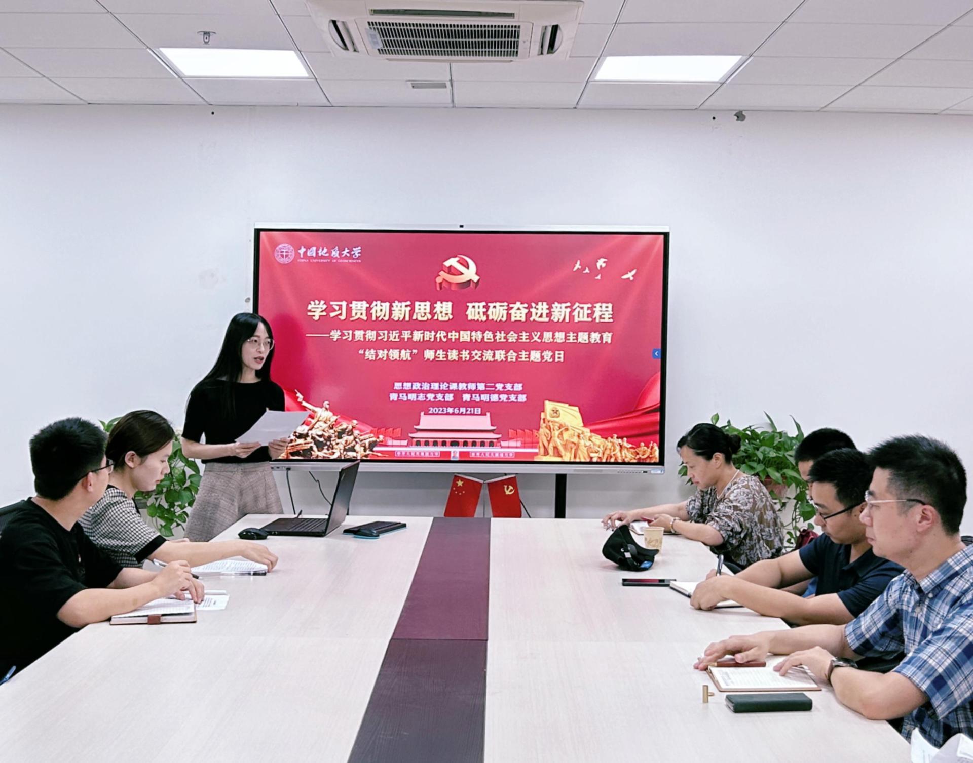 (通讯员:陈雅文、曹艺、李蔚然)2023年6月21日下午14时30分,太阳成集团122ccvip思想政治理论课教师第二党支部联合青马明志党支部、青马明德党支部在东教楼B1013会议室召开“学习贯彻新思想,砥砺奋进新征程”暨学习贯彻习近平新时代中国特色社会主义思想主题教育师生结对领航读书交流会,本次活动由党支部书记李蔚然同志和冯晓宇同志共同主持,师生党支部全体同志参与。