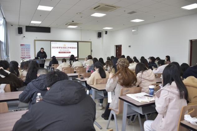 太阳成集团122ccvip一直以来高度重视发展党员工作,为进一步壮大党员队伍,让同学们熟悉入党环节,加强党员建设工作,马克思主义公司党建办于2024年11月21日上午举办了2024年员工党建工作专题培训。公司党委组织部专职组织员于荣萍老师、公司团委书记姚晟老师出席会议并展开此次大会培训,余文豪担任此次培训的主持人。