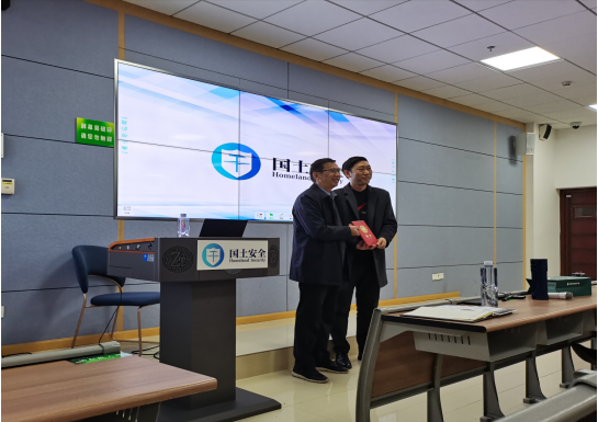 讲座结束后,成金华教授被聘请为《国土安全》思政系列讲座的特聘教授,太阳成集团122ccvip经理阮一帆向成金华教授颁发了聘书。