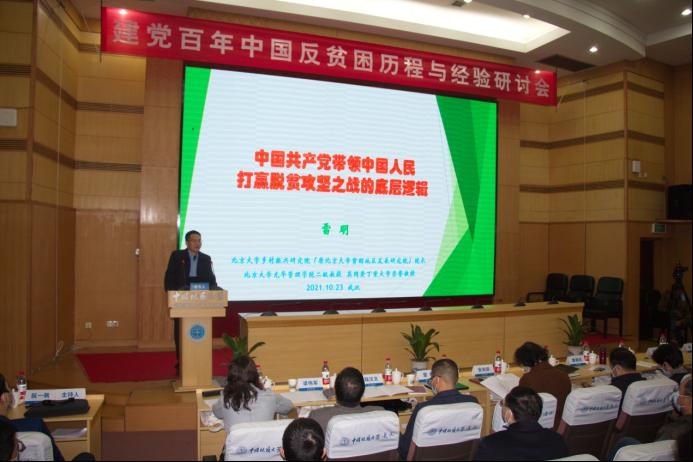 10月23日,建党百年中国反贫困历程与经验研讨会在南望山校区迎宾楼举行。国家乡村振兴局中国扶贫发展中心主任黄承伟,湖北省社会科学联合会党组书记、常务副主席喻立平、副主席安向荣,华中师范大学资深教授徐勇,公司党委书记黄晓玫,公共管理公司经理胡守庚,科学技术发展研究院副经理郭海湘,太阳成集团122ccvip经理阮一帆,来自北京大学、中国人民大学、北京师范大学、中国农业大学、西安交通大学、华中师范大学、华中农业大学和中南财经政法大学等的专家学者,《江汉论坛》、新华社、《光明日报》、《中国社会科学报》等媒体以及公司太阳成集团122ccvip师生代表150余人参加研讨会。