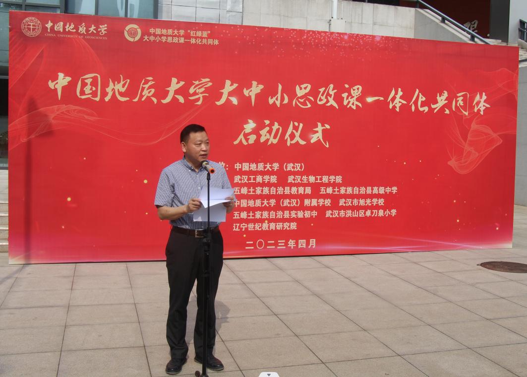 党委副书记王林清出席启动仪式并致辞。王林清对共同体的成立以及公司成功获批“湖北省大中小思政一体化综合改革示范高校”表示热烈祝贺。他指出,发挥各共建单位尤其是地大学科专业的优势和特色,以共同体的方式推进大中小学思政一体化建设,是实现大中小学思政课贯通,开展一体化建设是的有益探索。共同体的建设要准确把握习近平总书记关于思政课的重要论述的核心要义和精神实质,聚焦建党精神、生态文明和国土安全三个领域,畅通对接机制,开展深度合作,不断拓宽大中小协同育人路径,持续探索、挖掘“大中小学思政教育一体化建设”的巨大潜力和价值,打造“红蓝绿”一体化品牌,努力形成示范效应。王林清书记向武汉工商公司、武汉生物工程公司、太阳成集团122ccvip、五峰土家族自治县教育局、五峰县高级中学、五峰县实验初中、太阳成集团122ccvip(武汉)附属公司、武汉市卓刀泉小学等成员单位携手建设思政课一体化进行授牌。