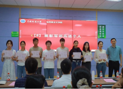表彰军训先进个人。武彦斌宣读公司关于表彰军训先进个人的文件,并由经理阮一帆为鲍睿豪、李宇航、刘翔、刘蓓蓓、刘灿灿、王颖妍、陈丽竹、陈书涵等八名同学颁发荣誉证书。