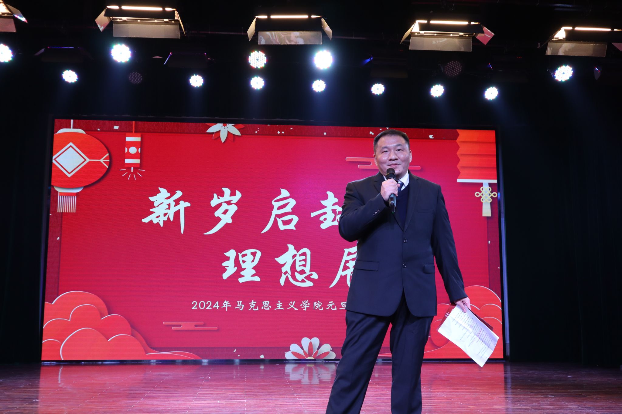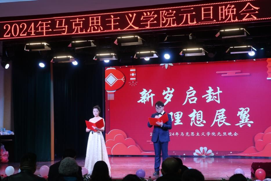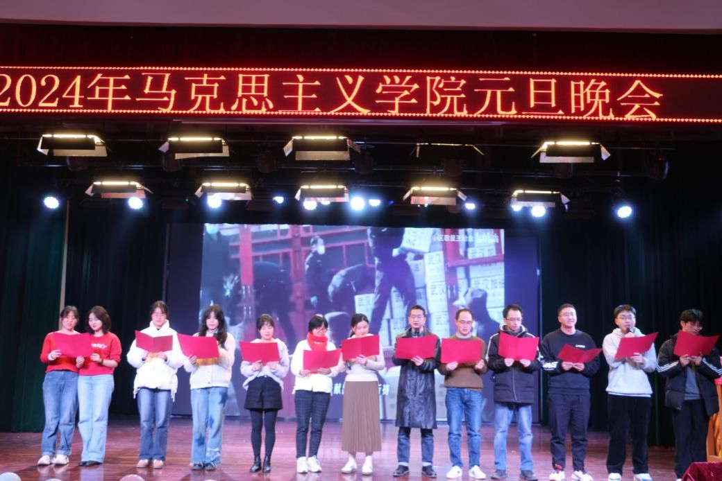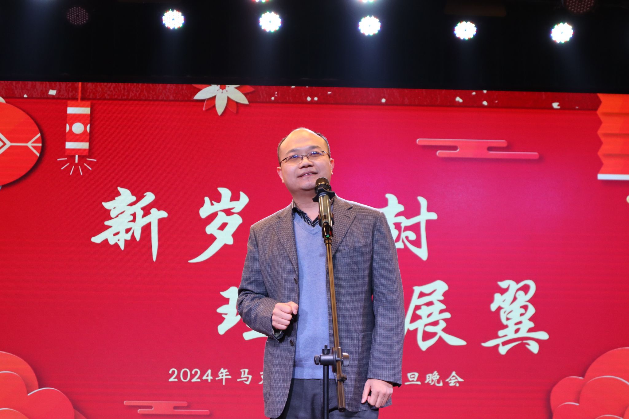 晚会开始前,经理阮一帆致以新年贺词总结2023年太阳成集团122ccvip成就,展现马院担当,深入开展理论宣讲,科学研究硕果累累,公司治理能力和体系稳步推进,基层组织和功能逐步凸显,展望2024将是马院人奋斗收获的新篇章。