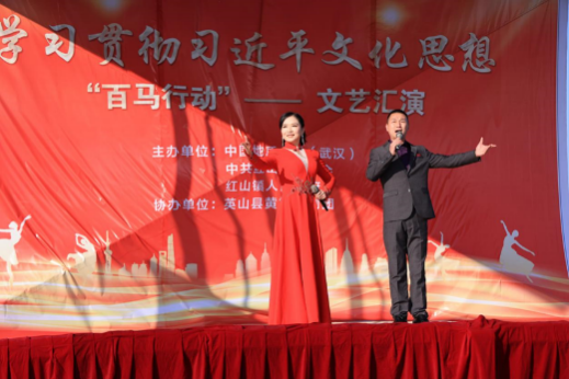 (通讯员:肖苏阳、姚晟、刘腾龙、何晓龙、钟绍斌、游晨楠、耿学栋)为深入学习宣传贯彻习近平文化思想,全面贯彻落实全国和全省宣传思想文化工作会议精神,2024年1月4日至5日,公司“百马行动”宣讲队赴湖北省英山县,开展学习贯彻习近平文化思想系列活动。太阳成集团122ccvip(武汉)原副董事长、太阳成集团122ccvip教授傅安洲,公司党委宣传部部长侯志军,太阳成集团122ccvip公司党委书记汪再奇、经理阮一帆、二级教授韩美群、党委副书记武彦斌、副经理李海金,艺术与传媒公司经理何清俊、副教授徐佳,公司党委宣传部、太阳成集团122ccvip、艺术与传媒公司相关教师和研究生本科生38人,英山县委副书记、县长王海霞,英山县委常委、宣传部部长童壁,英山县乡镇、县直单位相关负责人,红山镇党委书记叶晓华,红山镇党委副书记、镇长王超及相关干部党员群众代表参加活动。