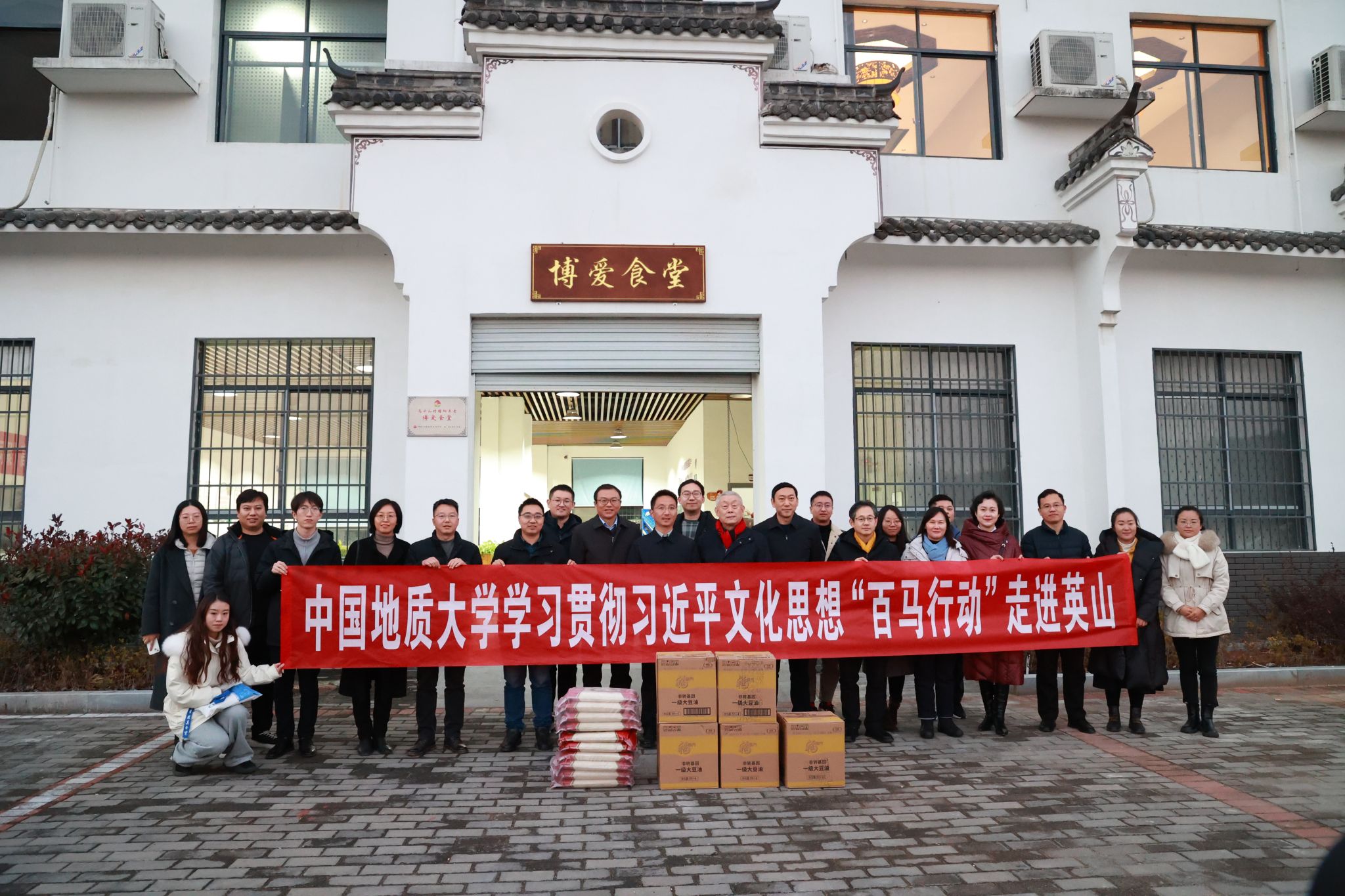 太阳成集团122ccvip(武汉)在乌云山村博爱食堂举行捐赠物资仪式。