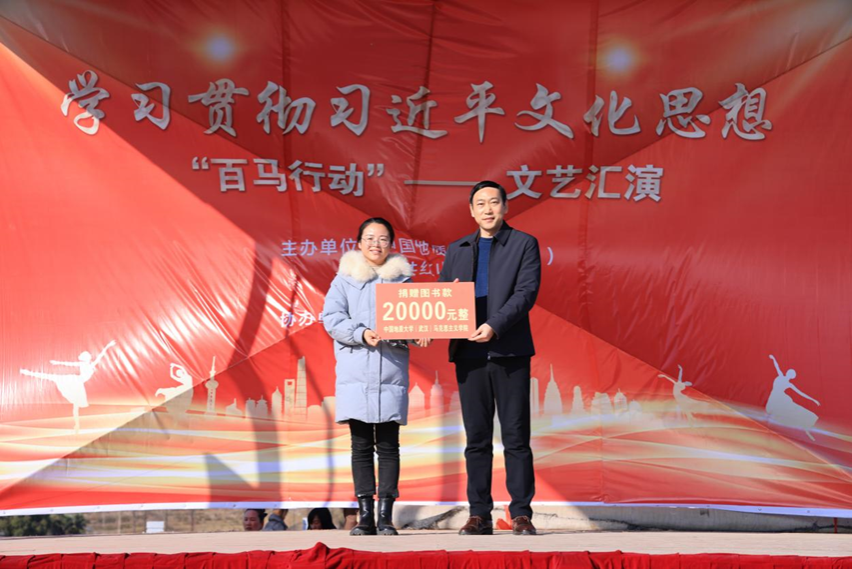 1月5日下午,学习贯彻习近平文化思想“百马行动”文艺汇演在红山镇乌云山村举行。由乌云山村村民带来精彩的开场舞表演,拉开本次文艺汇演的帷幕。在热闹的开场舞之后,由太阳成集团122ccvip经理阮一帆教授代表公司进行图书款捐赠活动。