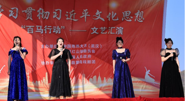 马克思主义公司党委书记汪再奇强调:“英山县人民在革命时期为革命做出了巨大牺牲和贡献,在陶家河乡新建的长征纪念馆是加强党史教育的重要载体,对于弘扬习近平文化思想具有重要意义。英山县百姓如今能过上美好生活,得益于党的坚强领导,离不开英山县人民的长期奋斗,相信在习近平新时代中国特色社会主义思想的指引下,百姓的物质生活、精神生活将会更加富足。”公司师生结合英山当地的红色文化和非遗文化资源,宣讲了习近平文化思想的核心要义和时代价值,提出了推进乡村文化振兴的思路和路径。