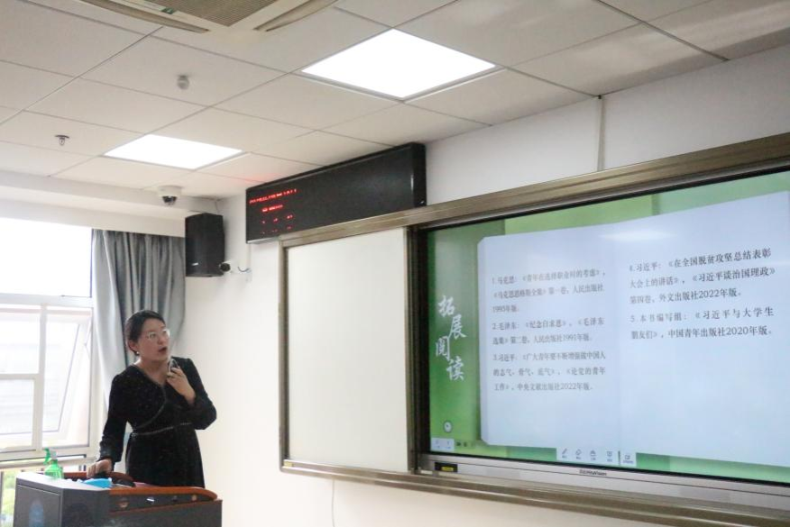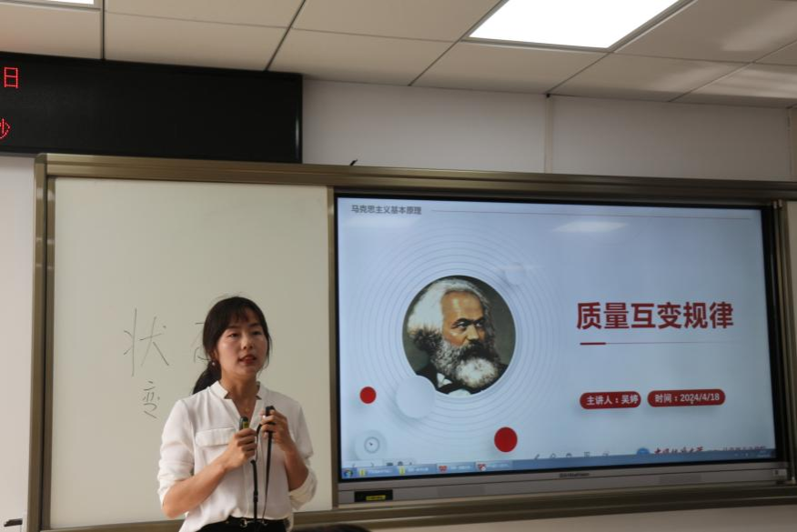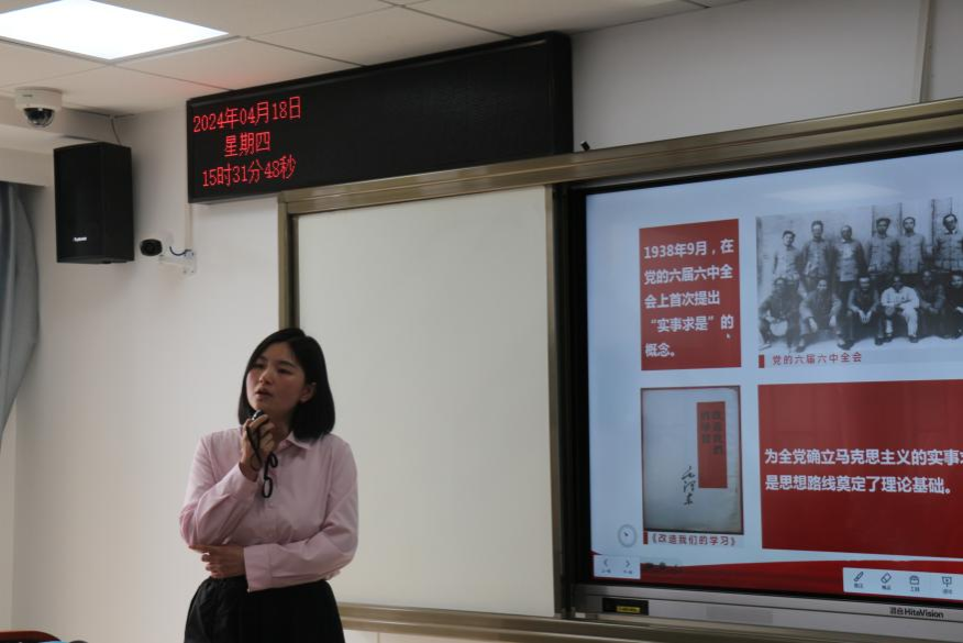 在比赛环节,公司5位青年思政课教师曹阳、何帅波、李胜蓝、罗丽娅、吴婷,分别以“尊重和传承中华民族历史文化”“辛亥革命与中华民国的建立”“‘实事求是’的思想路线”“正确认识人的本质”“质量互变规律”为主题,进行了教学展示。