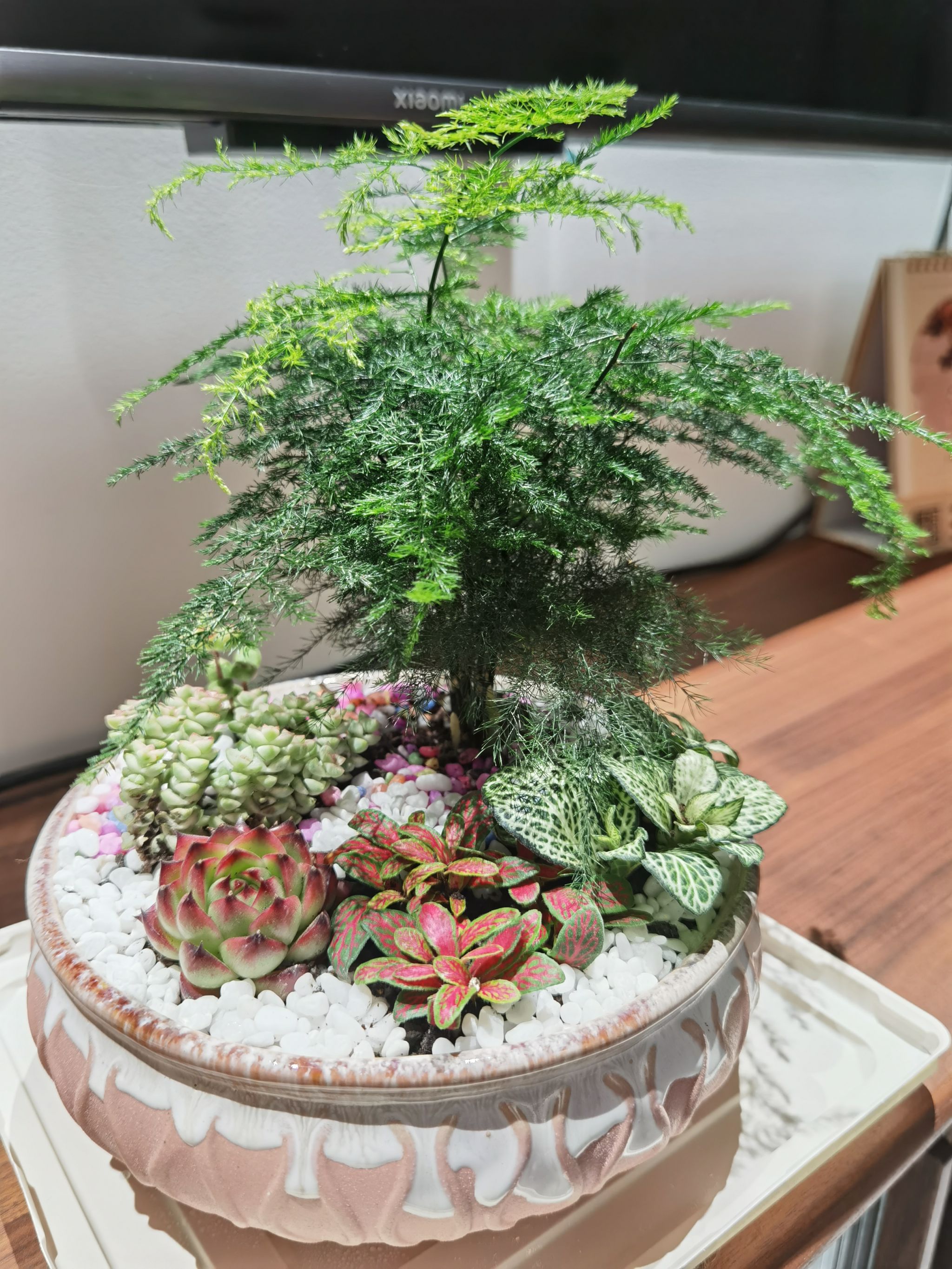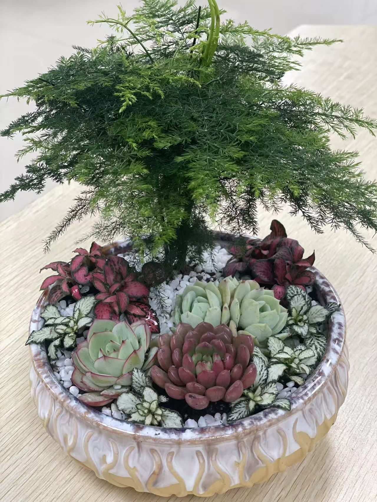 活动当天,公司特别邀请了专业园艺师为女教职工们讲解微景观艺术知识。园艺师从微景观的基本组成、形式设计、制作搭配技巧以及多肉植物的护理常识等方面进行了详细讲解,为大家打开了微景观艺术的大门。在园艺师的指导下,女教职工们纷纷动手制作属于自己的微景观作品。大家充分发挥创意,将文竹、多肉、蕨类植物和陶石等材料巧妙搭配,制作出姿态各异、独具匠心的微景观作品。