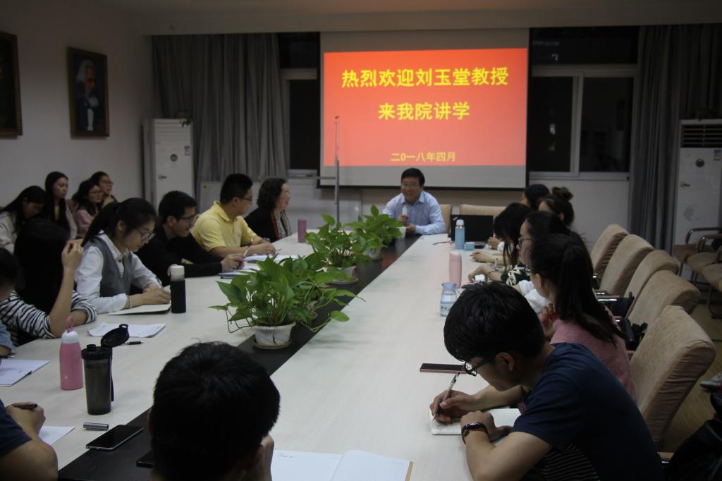 仪式结束后刘玉堂教授为马院研究生做中国传统文化专题讲座。刘教授从文化内涵与价值特征、文化与文明、传统文化核心内涵、传统文化与国学等几个方面做了精彩讲述,为马院研究生奉献了一道丰盛文化大餐。马院副经理陈军、思政系严世雄老师与研究生一起聆听了专题讲座。