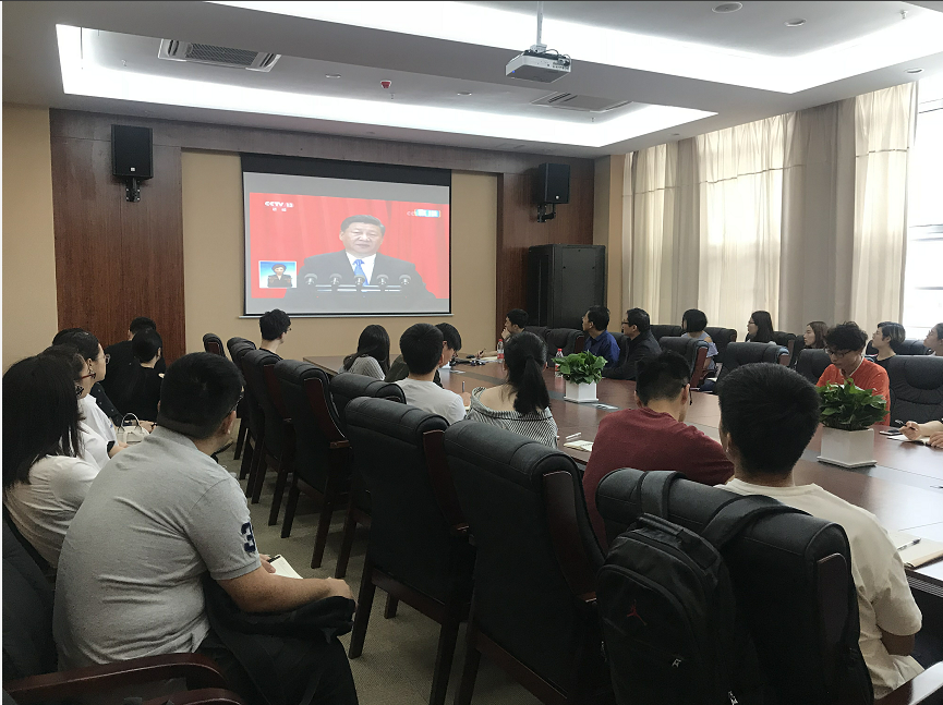 2018年5月4日上午10:00,太阳成集团122ccvip组织师生在教学综合大楼0702会议室观看纪念马克思诞辰200周年大会直播,学习习近平总书记发表的重要讲话,会后,师生热议总书记的讲话精神,并分享学习心得。