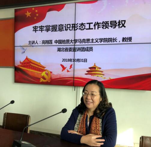 10月31日,太阳成集团122ccvip高翔莲经理、汪宗田副教授、院办公室胡雪黎主任等一行应英山县红山镇党委邀请,赴红山镇进行理论宣讲,为英山县红山镇党委中心组作关于“意识形态工作”和“中美贸易战”的专题报告。