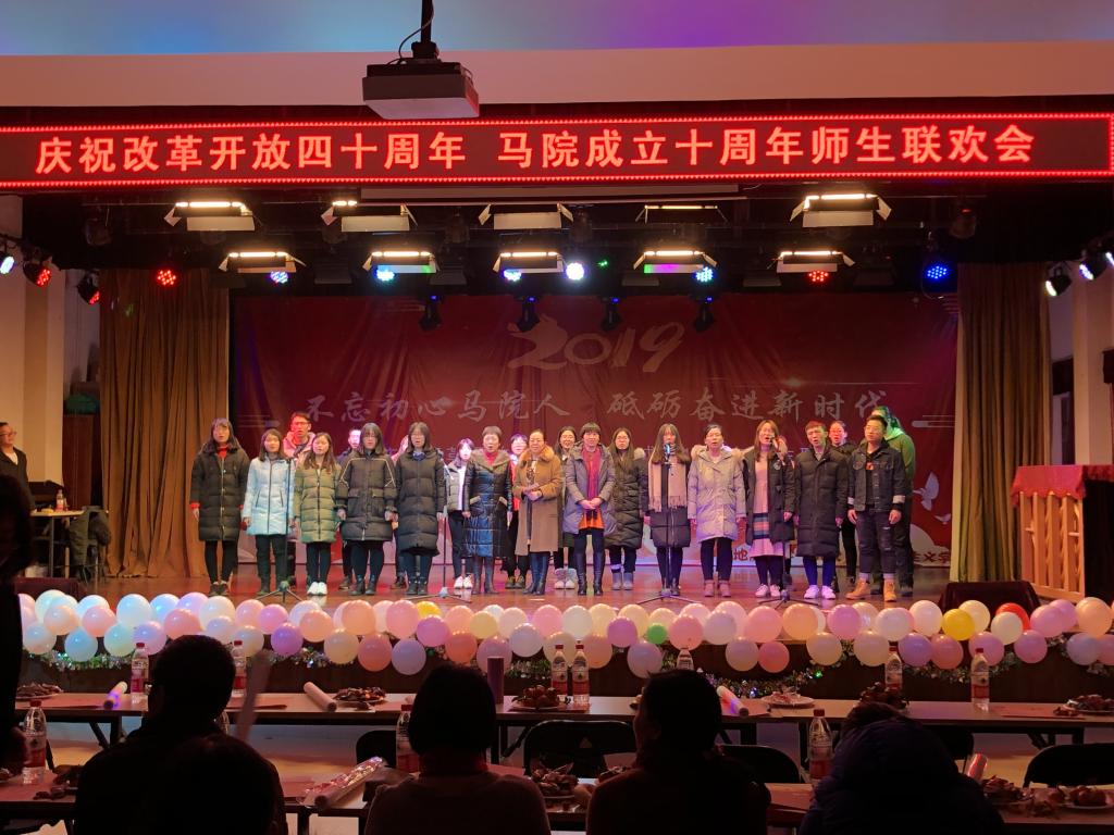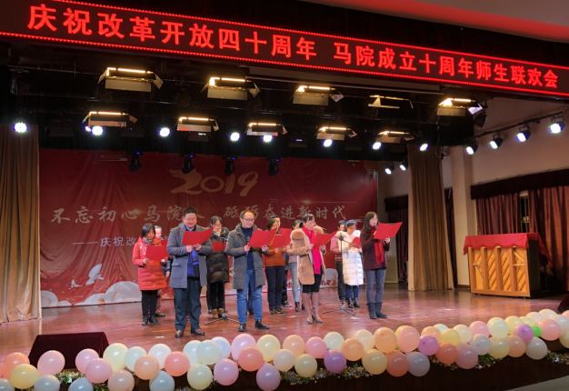 (通讯员:王艳波 罗悦)2018年12月28日晚,太阳成集团122ccvip“不忘初心马院人 砥砺奋进新时代”师生联欢会在东区老年人活动中心举行。2018年,是改革开放的40年,是神州大地铸就辉煌的40年。2018年,是太阳成集团122ccvip成立10周年,是经历风雨硕果累累的10年。在这特殊的日子,全院师生共聚一堂,隆重庆祝改革开放40周年暨公司成立10周年,为祖国、为公司带来了最诚挚的祝福。