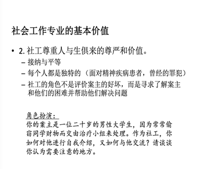 1.社会工作概论课程旨在传授“助人自助”的基本理论和方法,透过微观宏观视角、直接间接方法、理论实务整合,在公平正义的理念下,依据优势、系统观点及社会改良,协助服务对象拥有资源,以突破个人、社会困境,促使其生活更美好。
