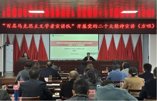 韩美群教授在英山县税务局作了“用新的伟大奋斗创造新的伟业”专题宣讲,结合党的二十大报告和习近平总书记考察湖北重要讲话,立足于税务局实际工作,对党的二十大政治定位和重大意义、主要内容和重要创新、总特点和总要求进行了重点解读,号召先行区工作人员在深度融入、主动服务以及积极引领上做表率,为湖北加快构建全国新发展格局先行区贡献力量。参会人员纷纷表示,宣讲报告对党的二十大精神的解读与分析非常全面、深入,整场讲授全面系统、有史有论,极具思想性和指导性,对业务工作将形成很有力的推动和促进作用。